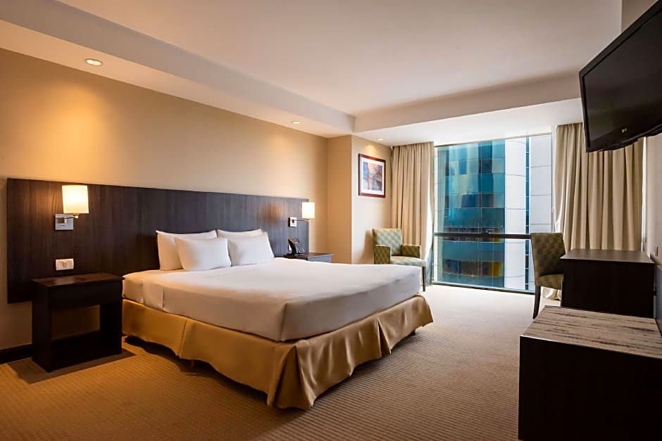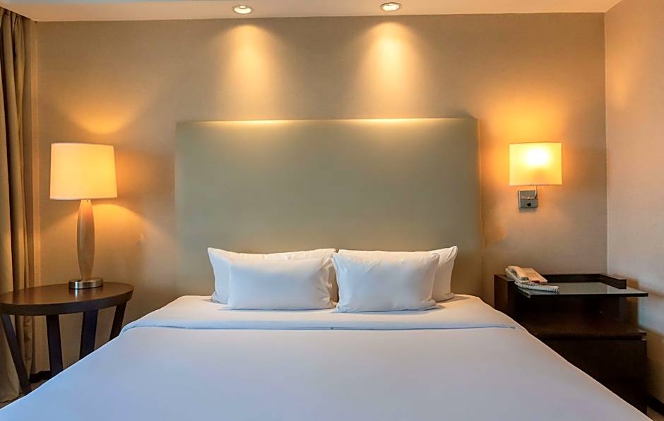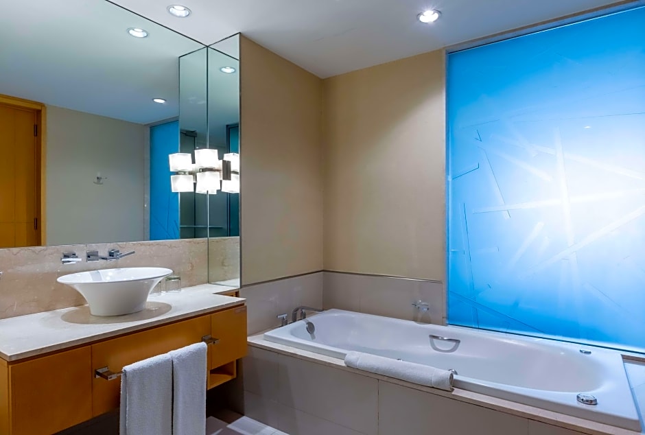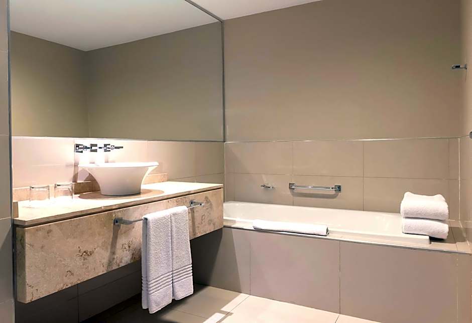 This suite's special feature is the hot tub. The spacious suite provides air conditioning, a mini-bar, a tea and coffee maker, a seating area, as well as a flat-screen TV. The unit offers 1 bed.